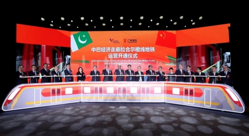 10月25日,巴基斯坦拉合爾軌道交通橙線項目在中國北京和巴基斯坦旁遮普省首府拉合爾市,以視頻連線方式隆重舉行運營開通儀式,這標(biāo)志著巴基斯坦駛?cè)氲罔F時代。國家發(fā)展和改革委員會秘書長趙辰昕,中國兵器工業(yè)集團有限公司董事長焦開河、總經(jīng)理劉大山、副總經(jīng)理植玉林,巴基斯坦駐華大使莫恩·烏·哈克、巴基斯坦旁遮普省首席部長薩爾達爾·烏斯曼·布茲達爾、中國駐巴基斯坦拉合爾總領(lǐng)事龍定斌等出席開通儀式。