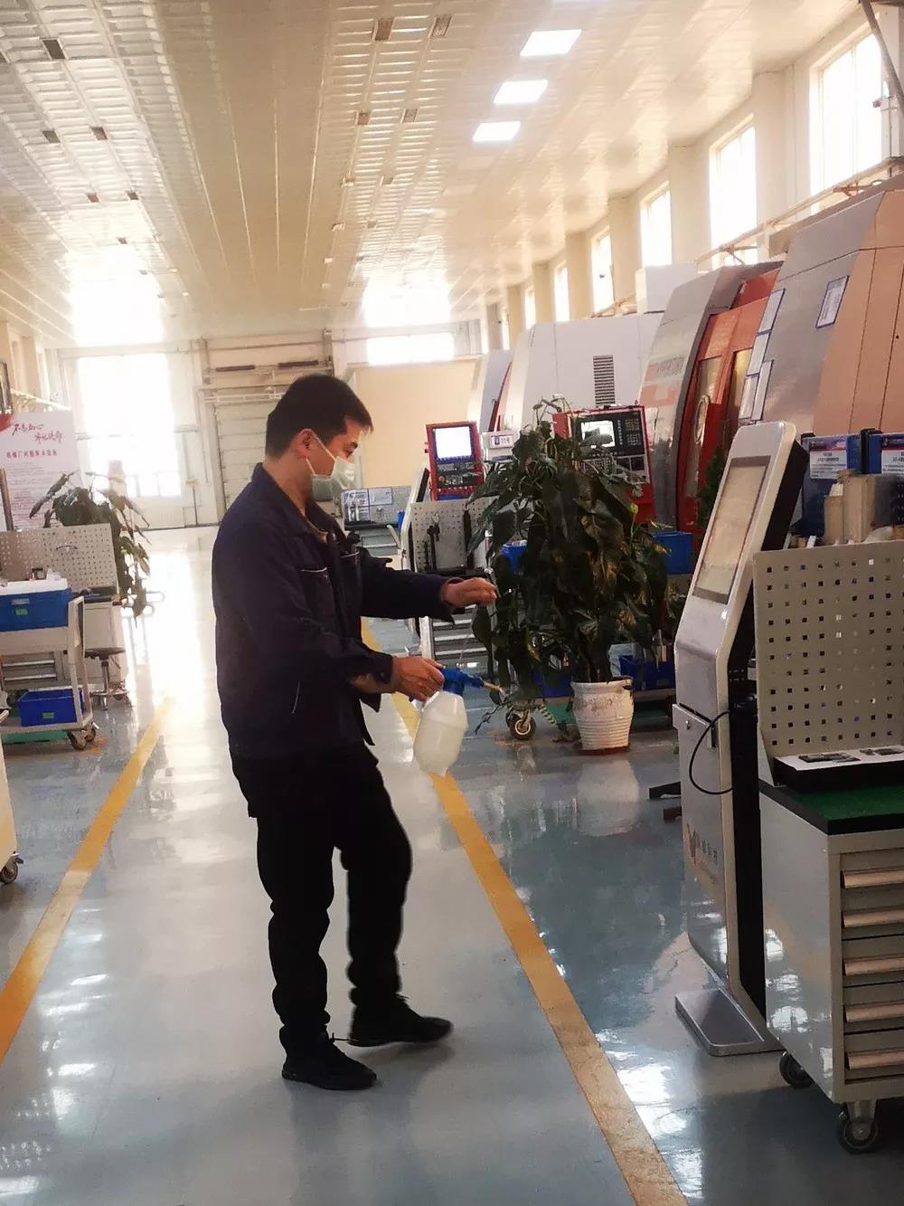 一機集團對出入人員進行體溫檢測;對各辦公場所、生產(chǎn)現(xiàn)場均利用消毒液進行消毒。同時積極開展測溫儀、體溫計、消毒液、紫外線消毒燈、防護口罩等物資籌備,做好假期后生產(chǎn)啟動準備。