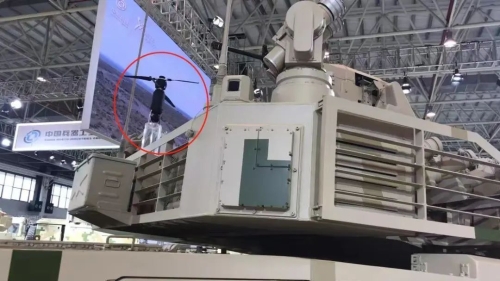 (圖為VT4A1重型主戰(zhàn)坦克加裝的車載無人機(jī)系統(tǒng)。 王鵬宇攝)