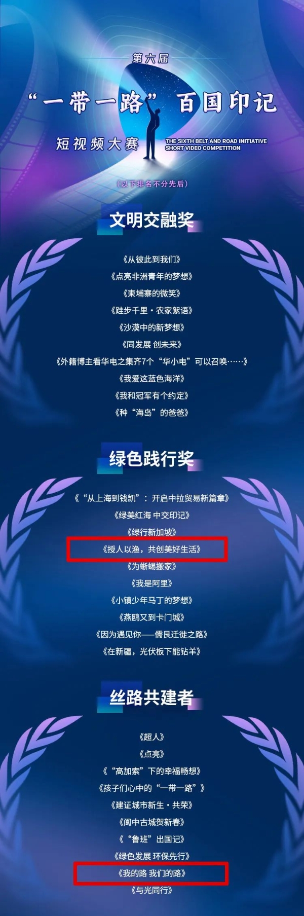近日,由中國公共外交協(xié)會主辦,國務(wù)院國資委新聞中心等單位協(xié)辦的第六屆“一帶一路”百國印記短視頻大賽獲獎名單正式揭曉,經(jīng)過激烈角逐,共有108部作品脫穎而出,中國兵器工業(yè)集團(tuán)北方公司兩部作品獲獎,其中,北方礦業(yè)《授人以漁,共創(chuàng)美好生活》榮獲“綠色踐行獎”,北方國際《我的路 我們的路》榮獲“絲路共建者”。
