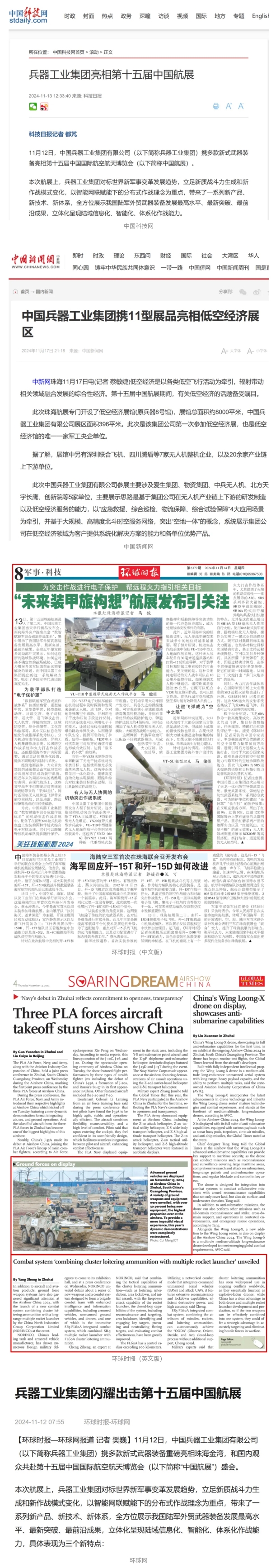 備受矚目!各大媒體廣泛報(bào)道兵器工業(yè)集團(tuán)參展第十五屆中國(guó)航展